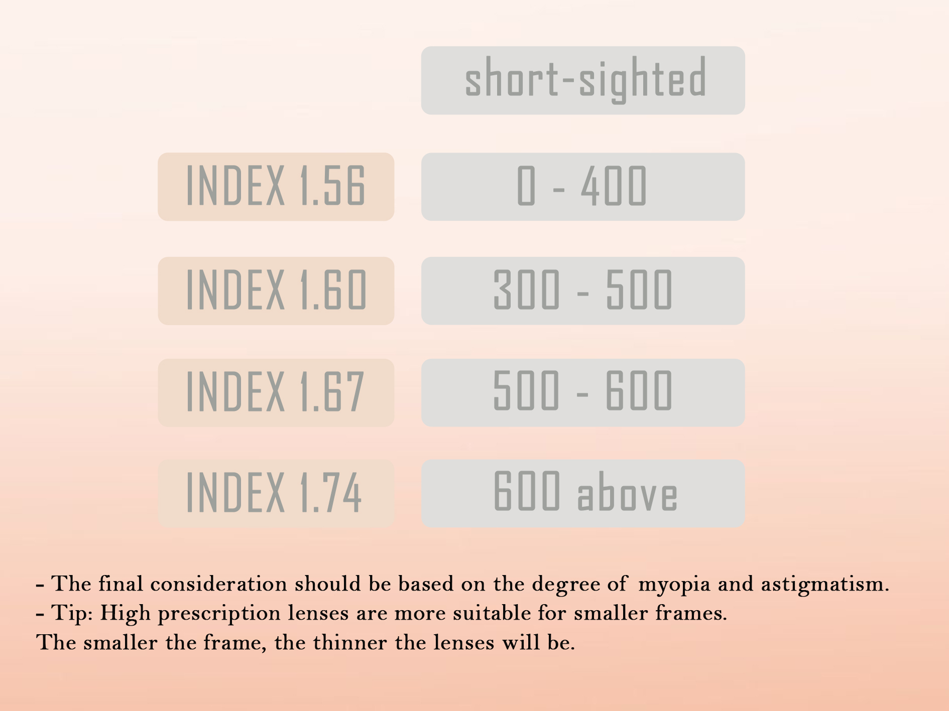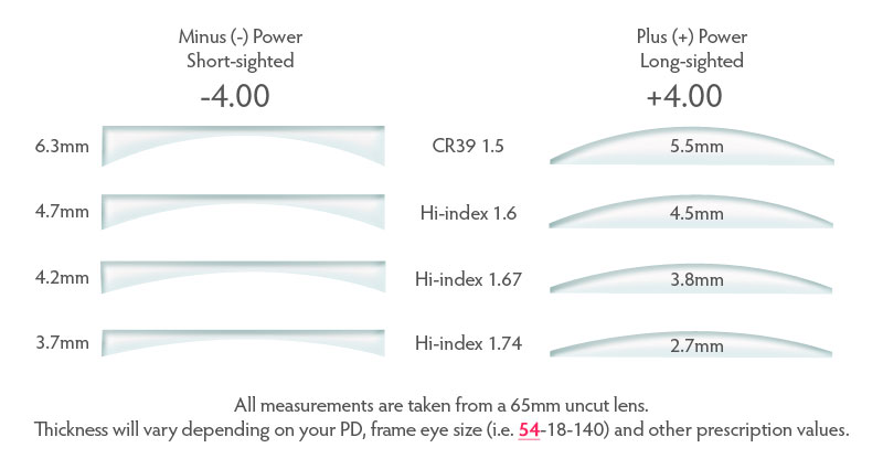 High-index lenses are made out of a specific type of plastic, unsurprisingly called high-index plastic. This material and the way the lenses are formed causes light to be refracted in a unique way, and that refraction allows for a stronger prescription to be packaged in a much thinner lens than you’d be able to get using other materials.